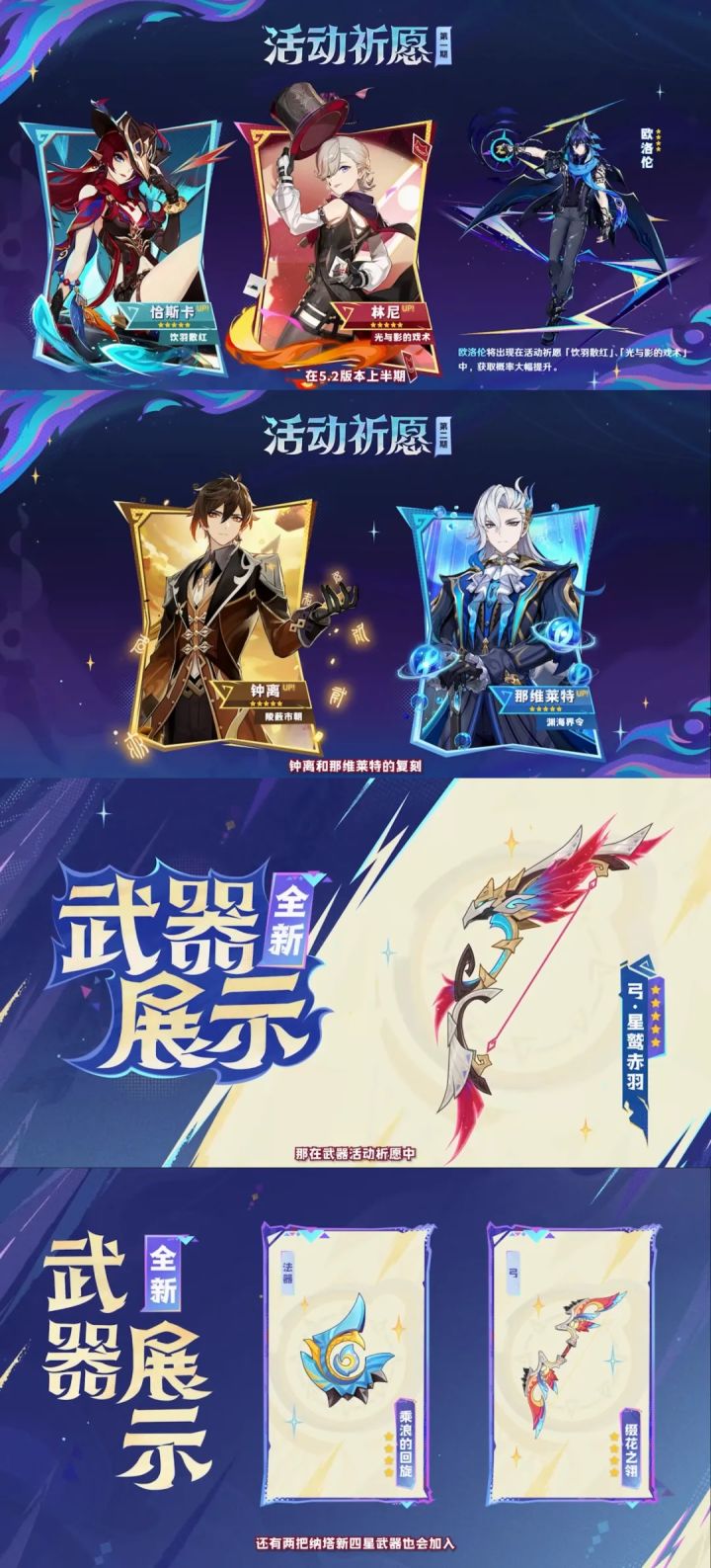 5.2版本只有上下两个卡池,无集录祈愿卡池。