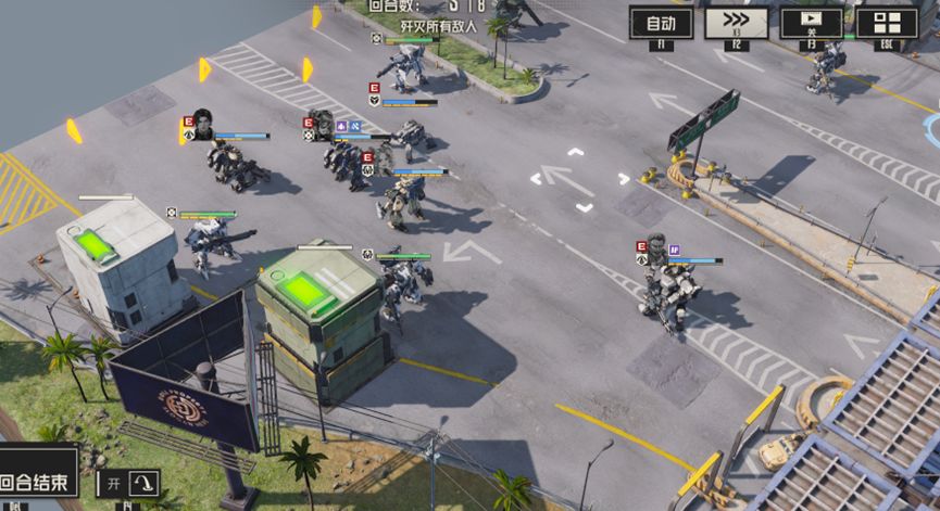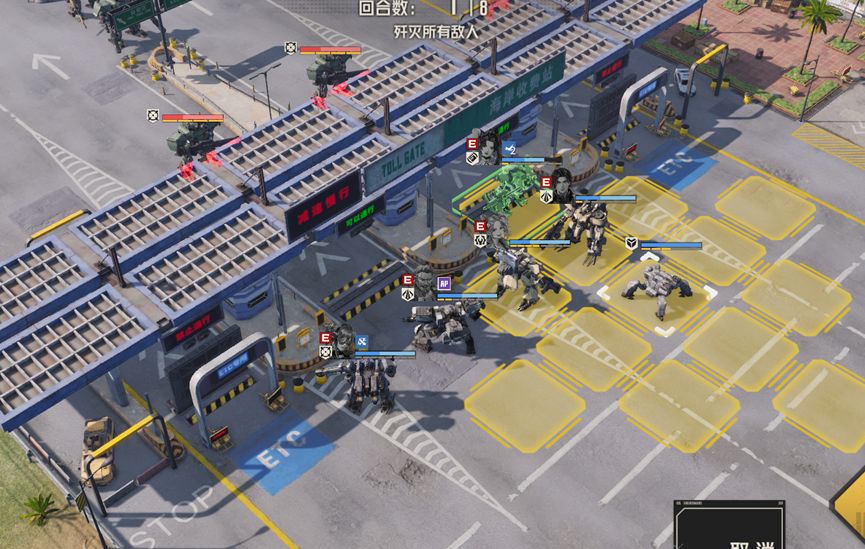 来到了第三关,这里出现了一个新的机制,机兵复制器,这个东西类似于其他部分战棋游戏中的兵营,可以用来招募单位。本关依旧是固定阵容,通关的关键就在于快速夺取场上四个机兵府复制器的控制权,让敌方无法招募单位,减轻我方的压力,同样地,我方也可以利用其招募出单位,这些战力不俗的单位可以协助我方战斗,最终将敌人一网打尽