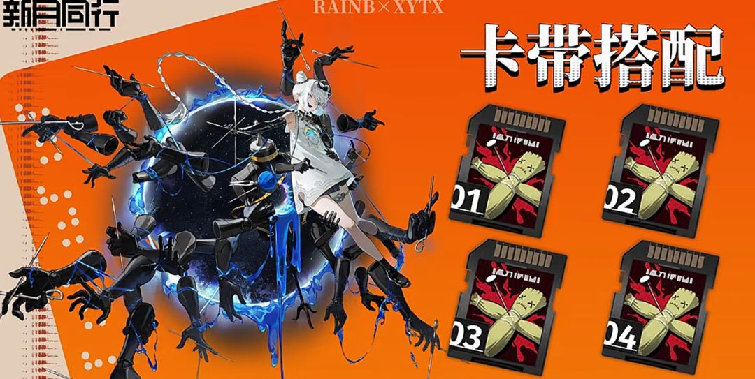#新月同行创作征集令 本次带来新月同行全六星卡带推荐,再也不怕带错卡带走歪路了。首先龙井卡带选择2红月圆舞曲2无主禁野,提供高额暴击率,配和龙井大招自带的物理穿透效果很好。
