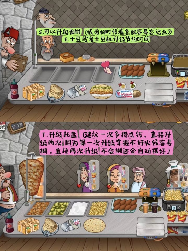 3.除设备店员以外的东西尽量越迟升越好(卷饼口味升级一定一定要放到最后超级好麻烦且很容易点错很锻炼大脑)