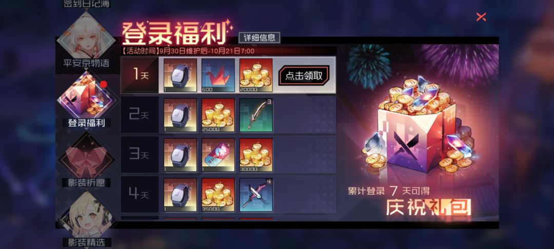 活动说明:活动期间,累计登录游戏,即可领取诸如平安券、灵魂核心等丰富登录奖励。本活动为一次性活动,每个奖励只能领取一次。