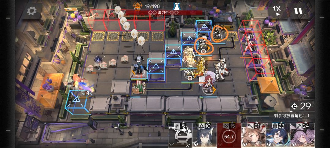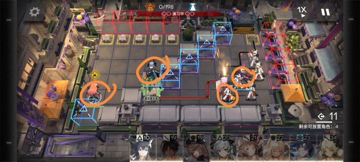 右边先下先锋*2,都直接下怪脸上清杂。桃子阻挡低,离主路远点,主路用讯使(尖兵挡二)。先锋多站一会场,过会怪动起来还会走到先锋脸上,继续清怪
