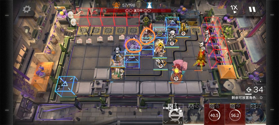 ex-1的难点在于烟花不能永续,需要硬打小怪。本关分为左右两边,左边lgs一技能单守;主要看右边,右边生存压力低,常规的盾+输出打法,群攻清杂输出够即可,不需要奶和反隐。