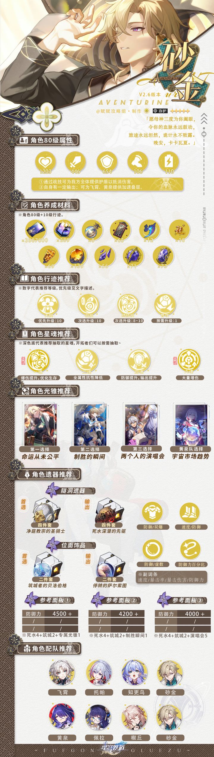 【V2.6攻略】砂金/黄泉/四星陪跑一图流攻略