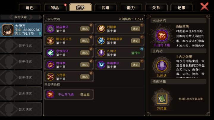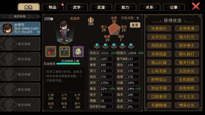 这次挑战了一下完全禁家园、不选武林霸主的开局。发现熬过前20级,后面也没太大难度。