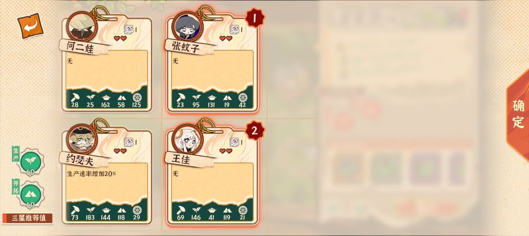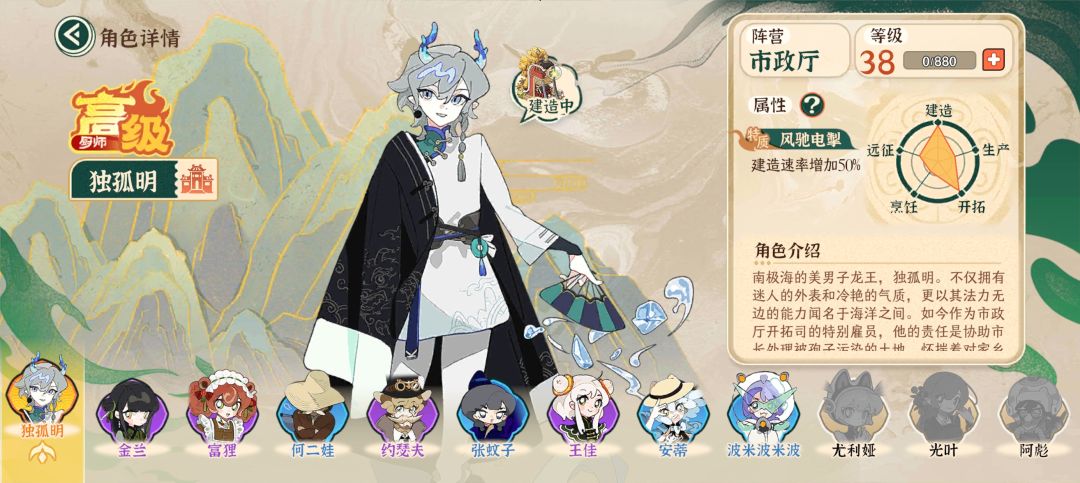 由图所示此角色的建造与开拓是拉满的,探索还需要烹饪与生产拉满的角色与其配合。