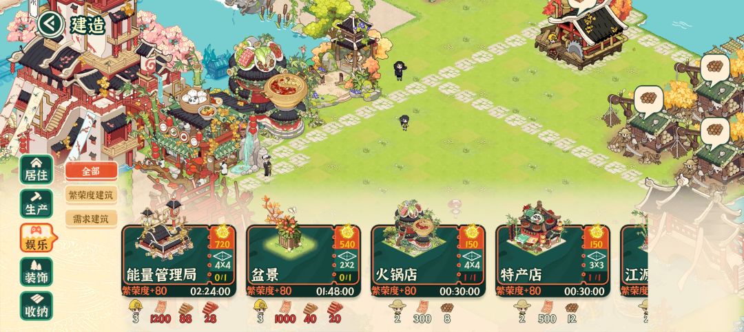 建筑池子必须抽,不然繁荣度不足。中级建筑只增加30繁荣度。其它增加繁荣度方法未知。