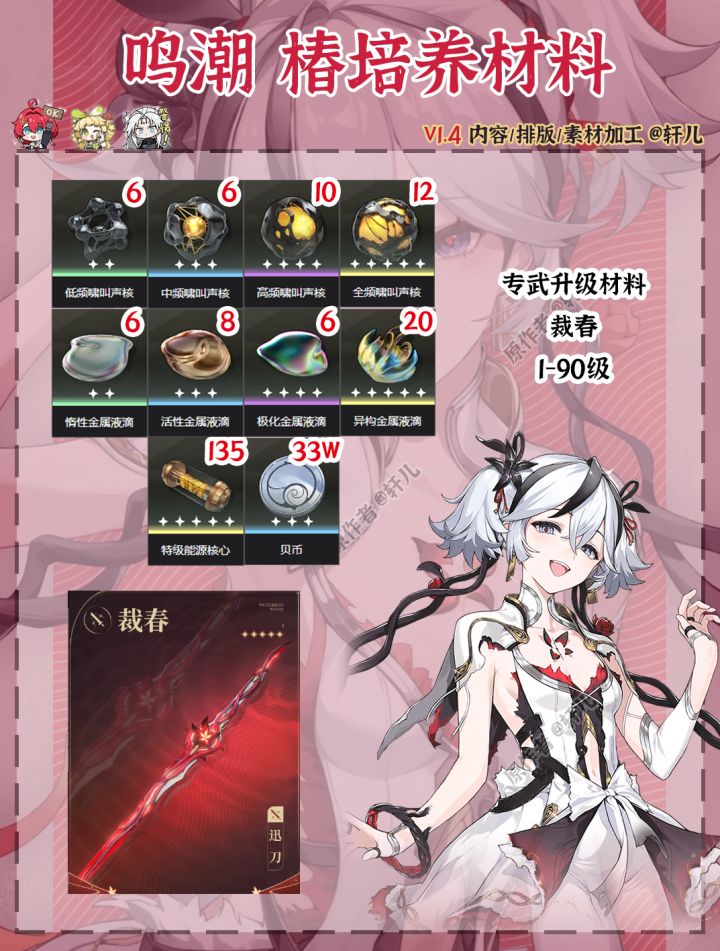 鸣潮椿马上就要上线了,潮友们准备好嫁妆了嘛,详细培养材料可以参考图文内容进行哦~