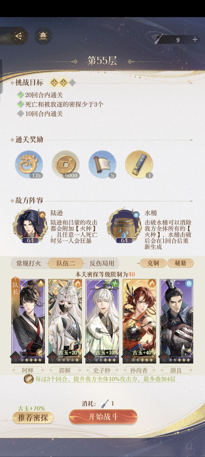 地宫55终于过啦!阵容是婵郭良喵香,香终于洗出普群了顺便暴击提升也没掉