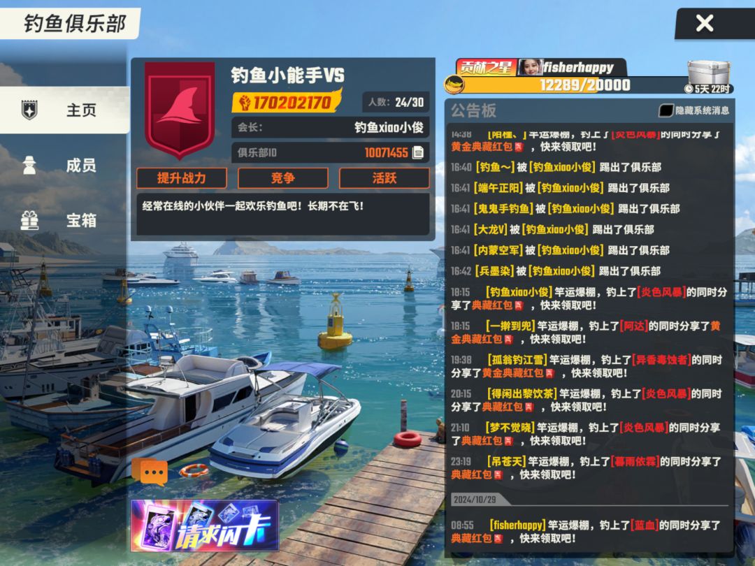 对劲。之后我尝试了自己所有手机号验证,都是直接新账号,没有一个是登录为原来的账号的。关键是我只记得昵称【fisherhappy】,所在的俱乐部是【钓鱼小能手VS】,俱乐部会长是【钓鱼xiao小俊】。PS:我已经好几天登不上去了,有可能已经被踢出俱乐部了。我点击游戏里的客服,根本不是人工客服,是机器人客服,根本看不懂我的问题,还让我填写ID,关键是我根本不记得。这游戏能不能搞个【昵称】+【密码】登录啊还有我的号怎么找不回来啊??试了所有能试的手机号和微信了,都不能登进我的账号,求官方帮忙,告诉我我的绑定手机号和ID号。这些截图是我平时玩的时候截下来的。#欢乐钓鱼大师 #账号丢失 #人工客服#求助