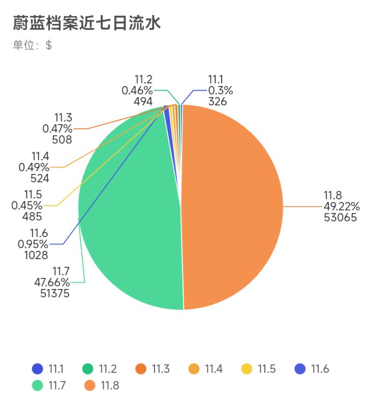 近八天的流水平均值在13000左右,但看图可知7、8号两天的流水占比接近97%,看目前的涨势,想必今天应该也还会更高,但不排除大家都已经抽完了,不会再氪金了