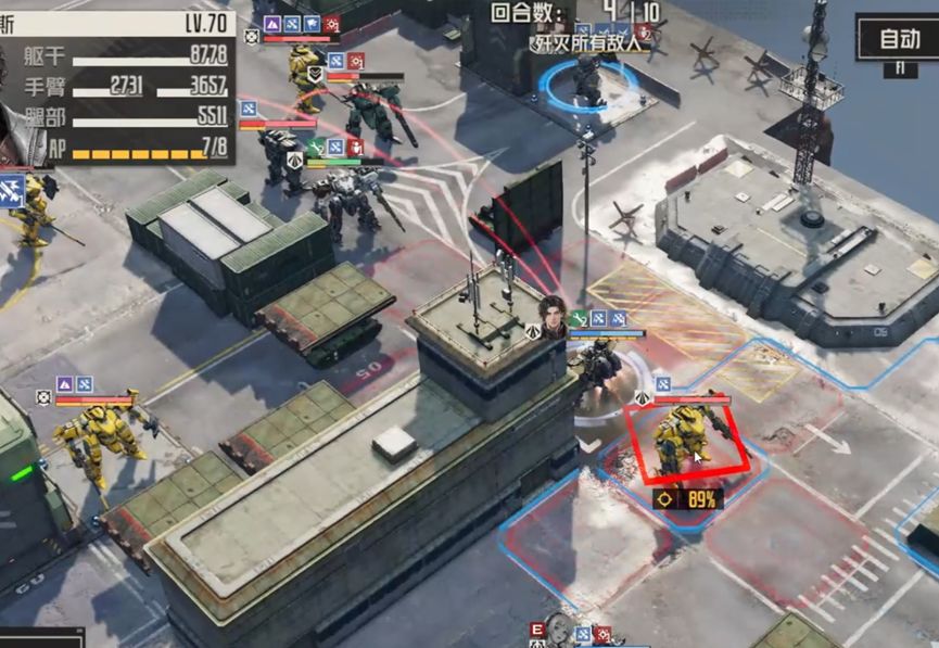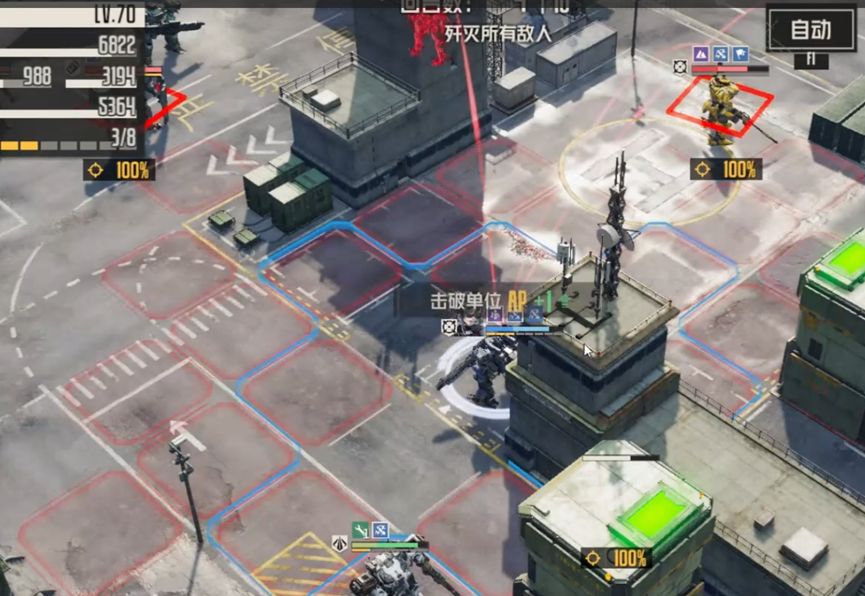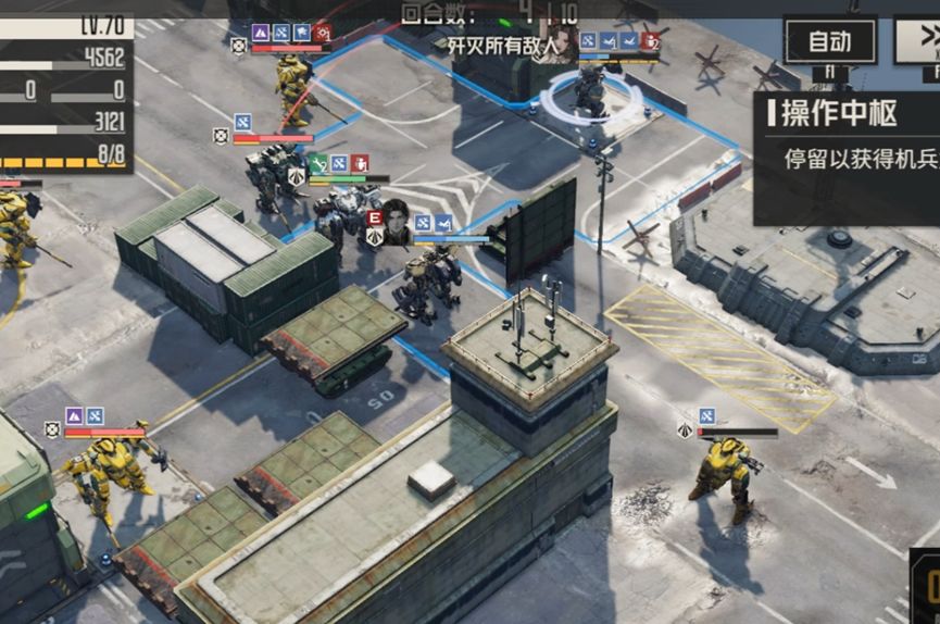 凯莉出去打残重机枪兵,再动回来,召唤机兵