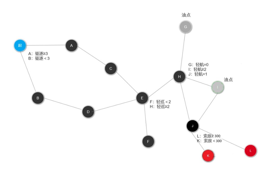 图中可以看出必须要有的是4艘日系船,驱逐3艘,还要有一艘轻母才能过G点。
