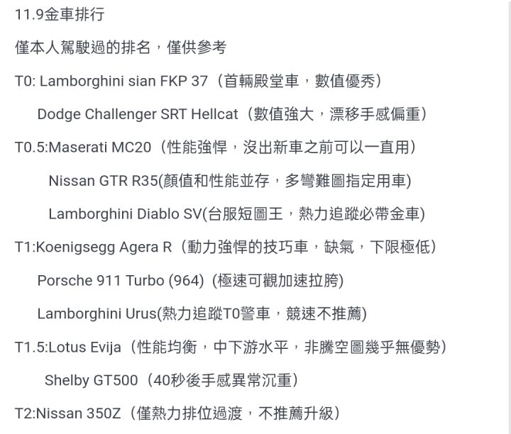 11.9台服金车排行