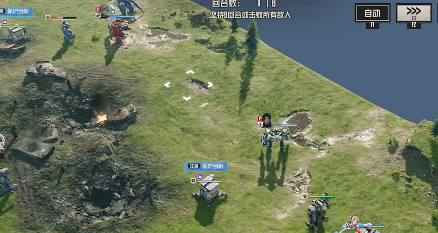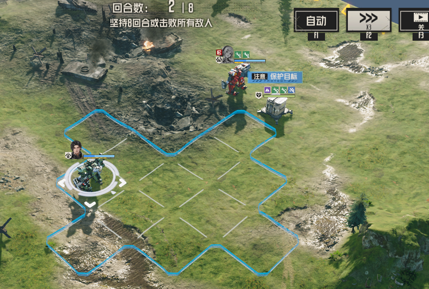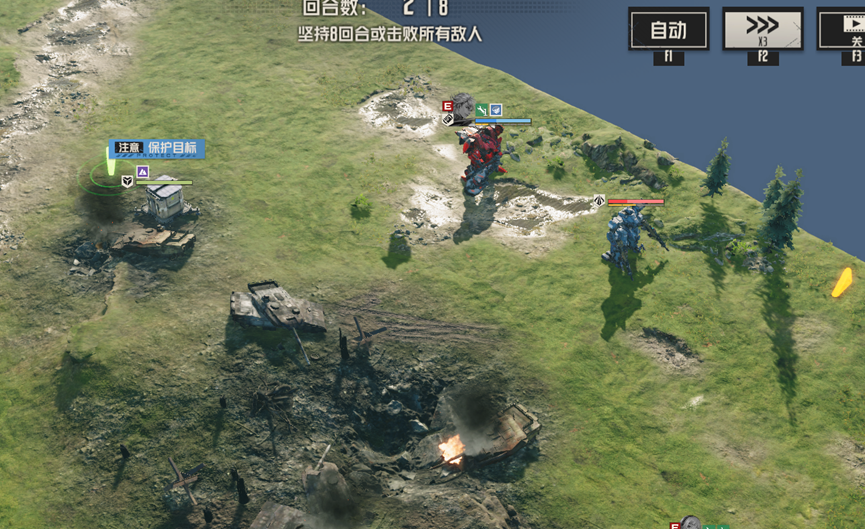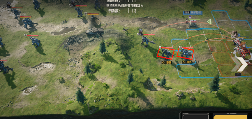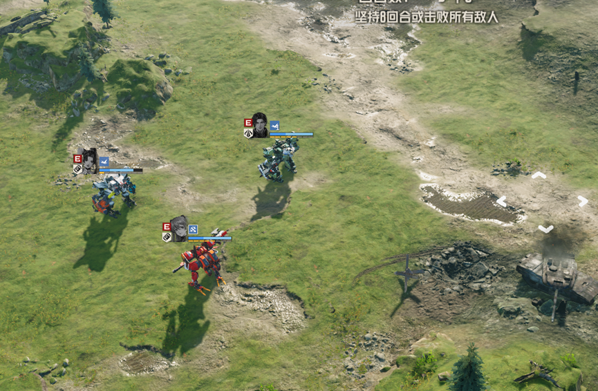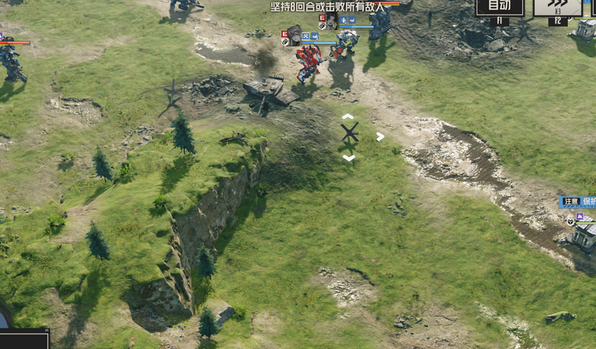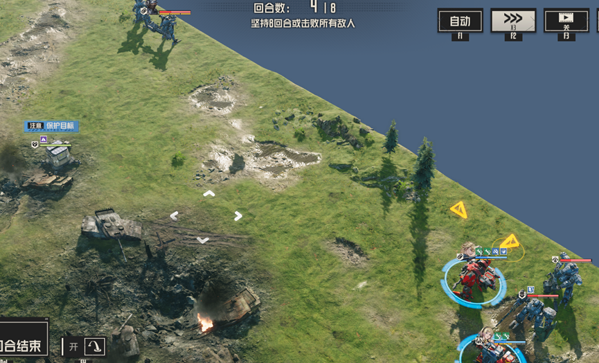 后续会继续刷新援军,但只要场上没有任何敌人,就会直接略过援军,直接结算胜利,这里我们可以将左边人员拉到其他援军处,消灭剩余敌人,直接胜利,也可以慢慢等待8回合胜利,但需要注意保护信号塔