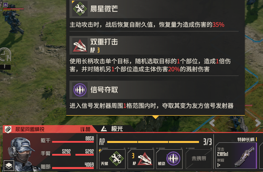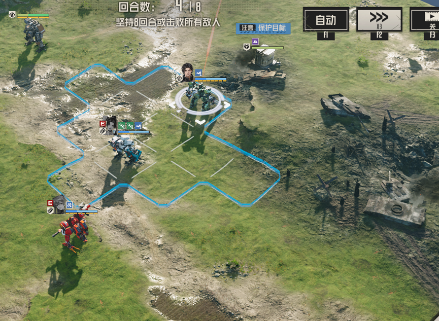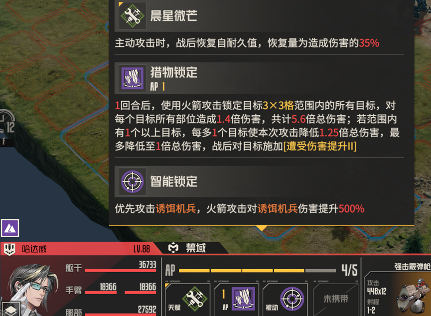 哈达威在场上不会对我方攻击,只会攻击诱饵机兵,但我们依旧无法绕过。其耐久较高,同时天赋能够恢复耐久值,如果一回合内不能将其消灭,下回合,其耐久基本上回满,想要消灭他,需要集中火力一回合内将其消灭