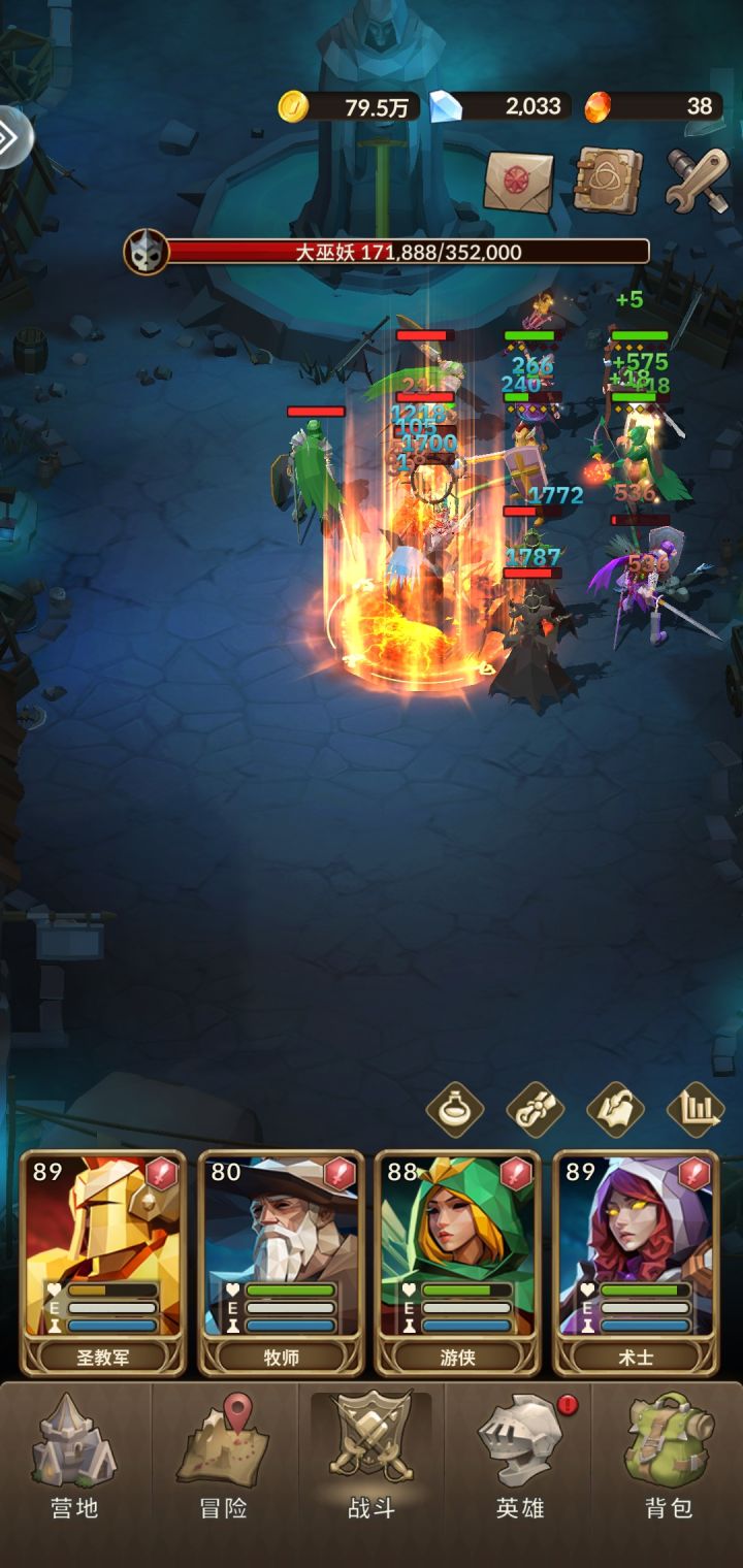 7.这个挂机阵型打法很适合打巫妖,因为英雄优先打巫妖和远程怪,导致多数时间近战怪很健康。到后期玩家级别高装备好,巫妖放技能后,英雄都不会死,都会回血上来,比分家打法还安逸。