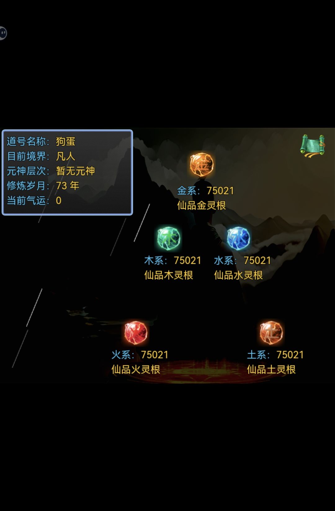 来吧宝贝们给你们一个前期的规划路线,开局道族,最好寿命长点!天赋善人+前世今生(牵扯到轮回可能会比较有用)。灵根全部顶级能百分百挂状态可以开启后续一系列任务拿到厨艺,凝气六层那个老怪物可以一直给他挂状态让他一次手出不了!然而并没有什么卵用因为我砍了他一晚上都砍不死后来才知道只需从他手上逃得性命就可以,然后找到黄石公学会第一个凝气境功法,但是现在很郁闷啊不知道这功法怎么修炼还在摸索中