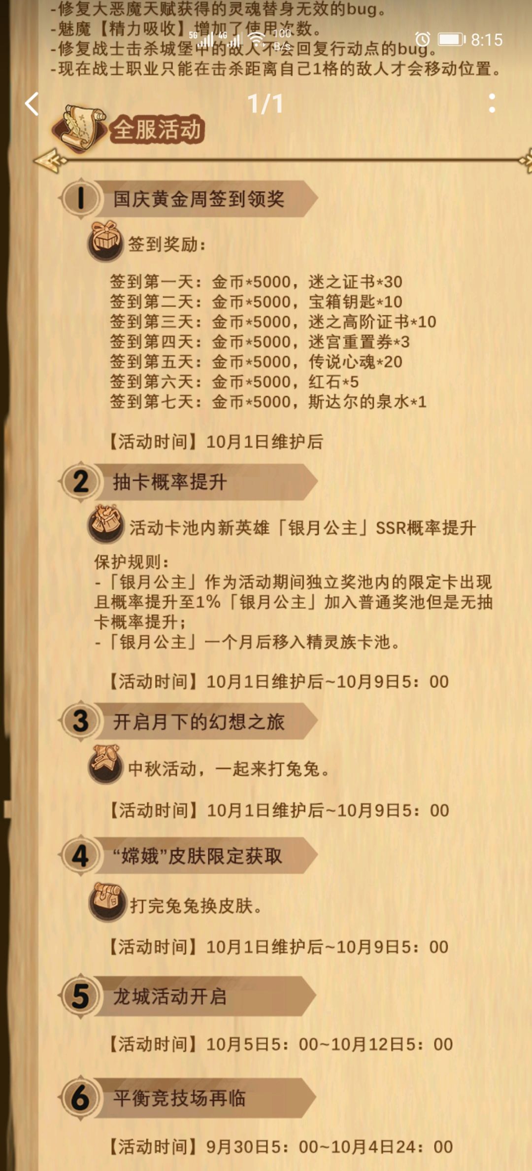 弱弱说一句。我不要活动周签,你把月签补给我。这个月签没满跟玩家没关系吧,我没记错应该是9月5号开服。你这个首月重制奖励说不过去吧。玩到现在一件ER双词装备都没有,你们还要卡资源?
