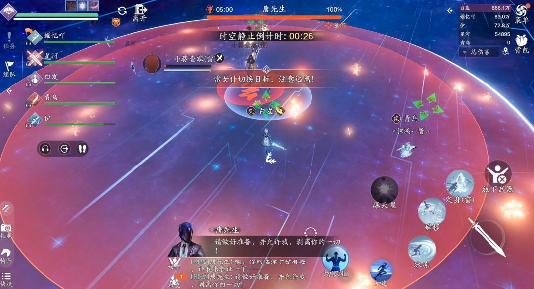 当少侠指认成功之后,唐先生会立即进入“时空静止“倒计时,此时会释放一个全屏范围秒杀技能,这个是新增的副本机制。