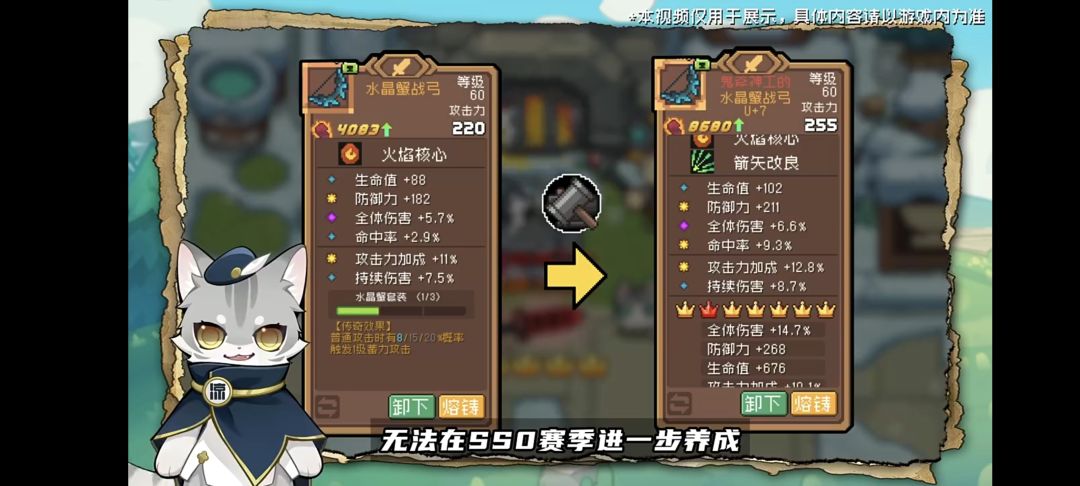 然后就是武器系统,首先就是boss魂单羁绊也有效果了,水晶蟹也优化了描述,明确了是触发一级蓄力效果。多了个命中率词条