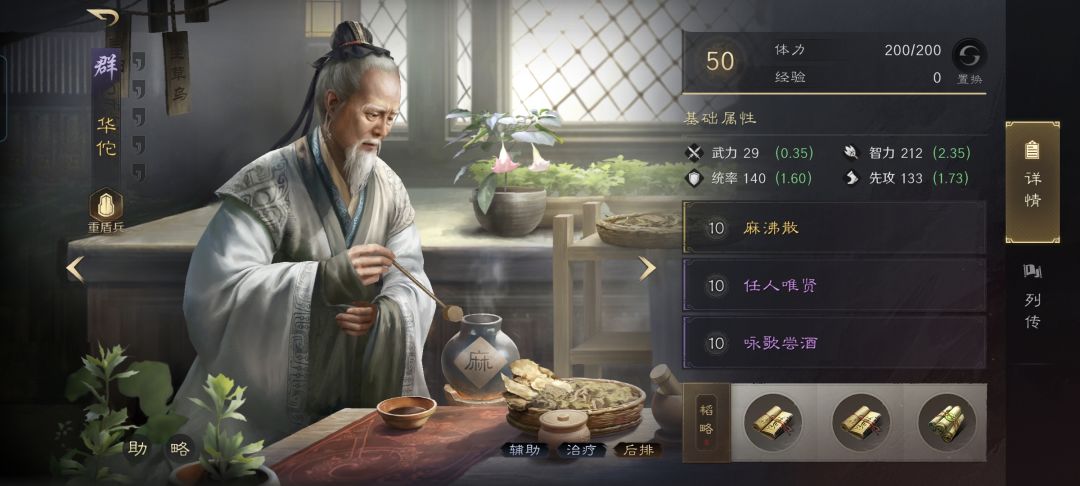 华佗战法:麻沸散+任人唯贤+咏歌尝酒。