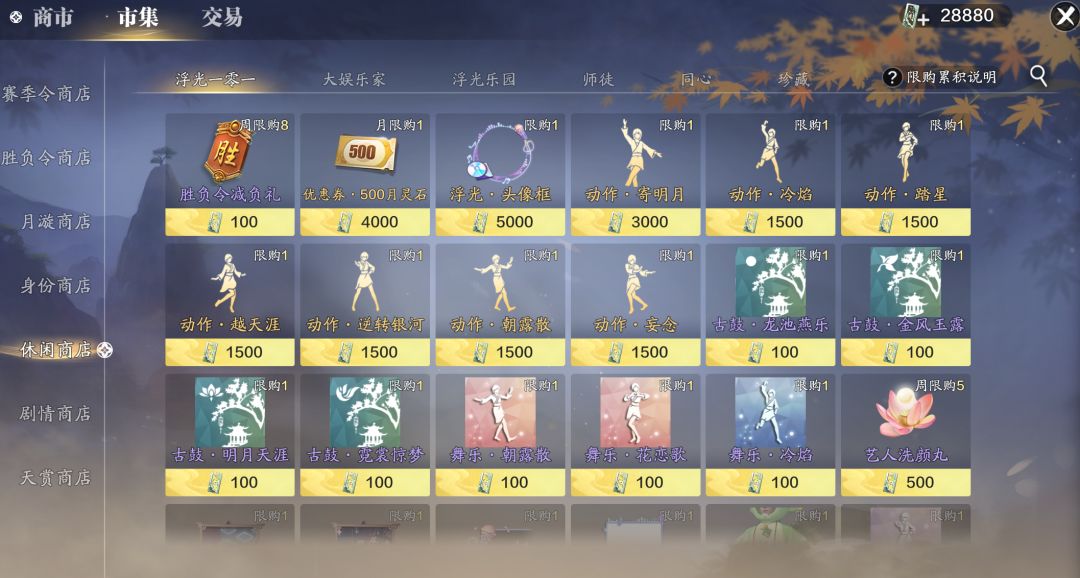 闲情令可以通过多种休闲玩法获得,主要可以用于兑换2000-500月灵石优惠券、胜负令减负礼、头像框、舞蹈动作等道具,详细兑换道具可以在闲情令商店查看。