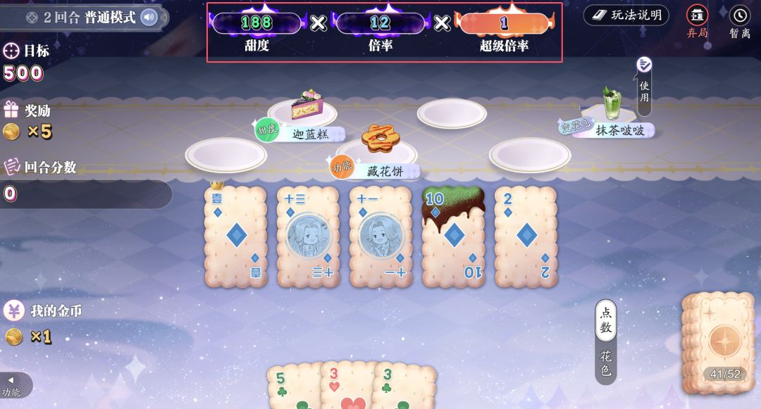 首先我们要知道的是,每一次出牌结算的分数构成,是由甜度*倍率*超级倍率所构成。