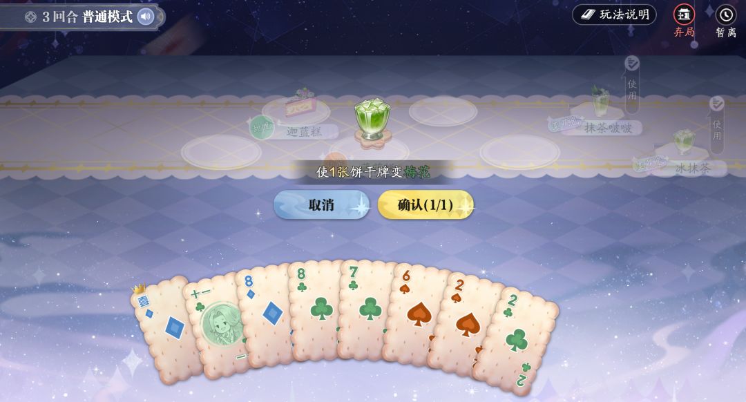 饮品则是一次性使用,效果通常为变更花色、加减卡牌点数、增加出牌倍率和甜度。