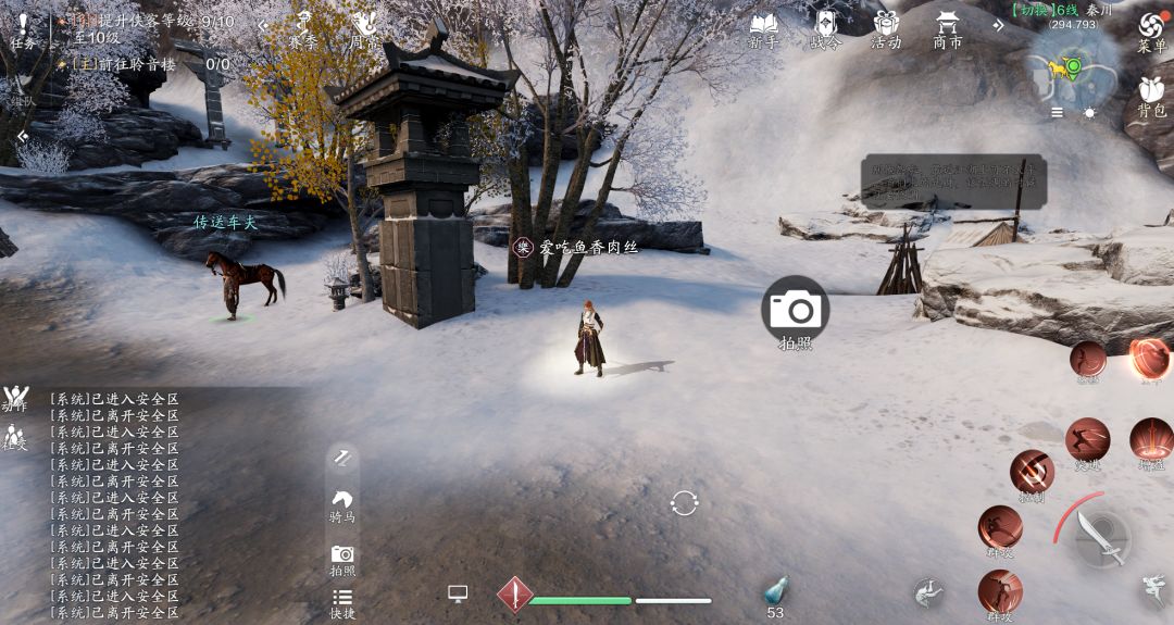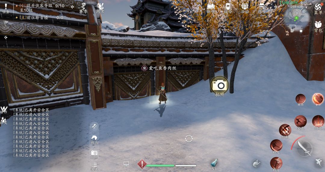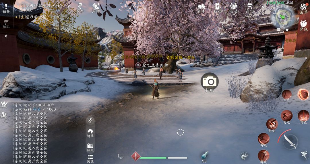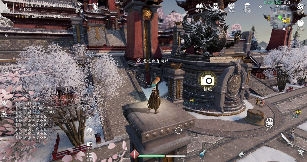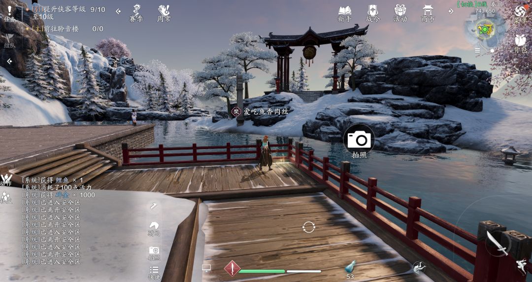 寒山行拍照点这围墙外面的水域内,天刀手游正式服每日13:00-13:30和18:00-18:30两个时段,会刷新锦鲤鱼群。