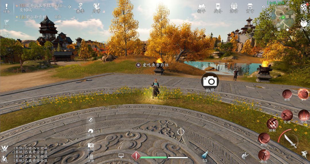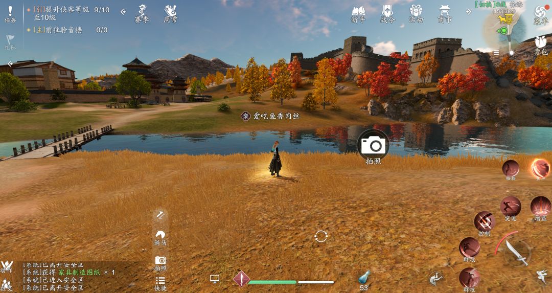 打卡胜景录需要少侠们到达指定地点,进行“拍照”操作。