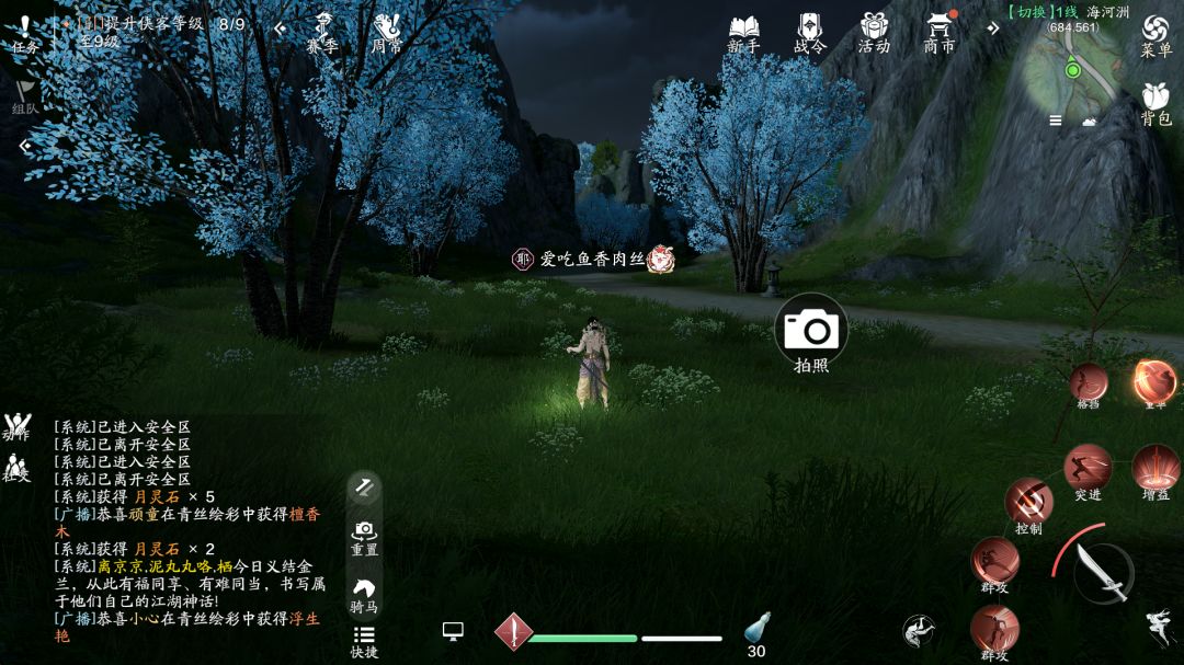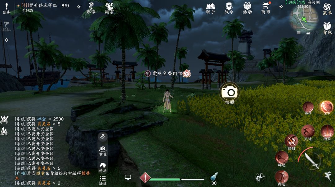 打卡胜景录需要少侠们到达指定地点,进行“拍照”操作。
