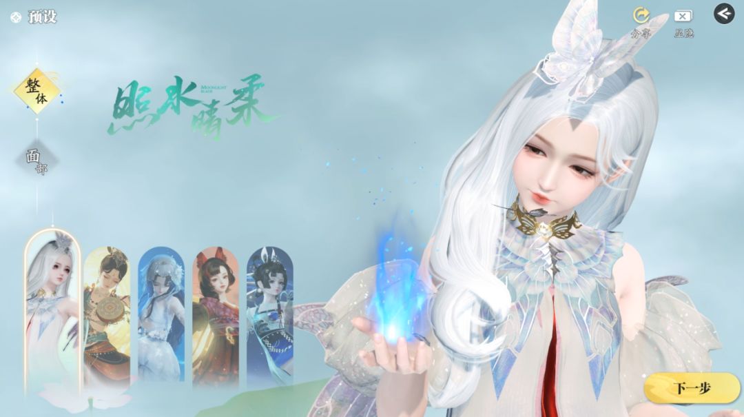 接下来就是熟悉的捏脸环节了,在预设页面中有不同时装的整体形象供少侠选择,也有单独的脸部捏脸预设,动手能力强的少侠可以在下一步中细化脸部的细节。