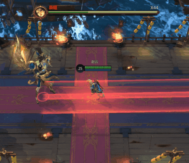 2)逐月:蓄力一段时间后对目标所处路线射出一支光箭,对沿途的敌人造成范围伤害,并附带眩晕和击退效果。