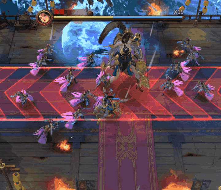 4)漫天箭雨(大):对全场进行大面积且持续不断地射击,造成大范围高额伤害。注意:箭雨区域是按照一定的规律和顺序固定进行生成的,要仔细观察哦~