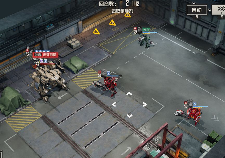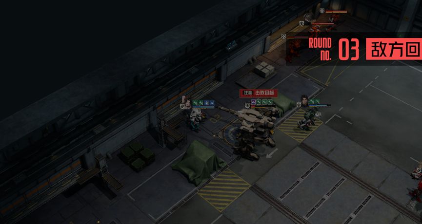 本关我们位于地图中部,前后都有敌人,左边的大门无法打开,所以全员都需要从右边大门进入房间。开局我们清理掉前方敌人后,就可以直接去处理boss,后方的追兵以及后续刷新的敌人我们都可以直接忽视掉。这次boss的技能其实比较简陋,与我们此前遇到的大型机兵相比,强度并不算高。
