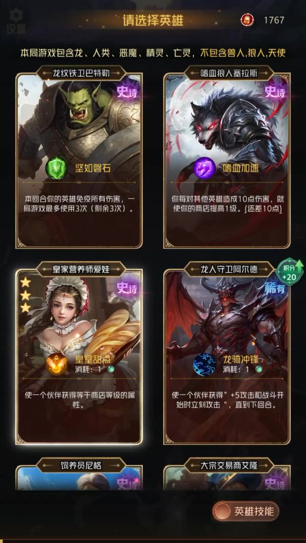 常见的提供经济英雄以及找牌英雄也是玩精灵族不错的选择:不死商队娜塔莉,罗莎琳公主,皇家营养师爱娃,守财奴夏洛克,投机客尼尔多,寻猎者埃尔西