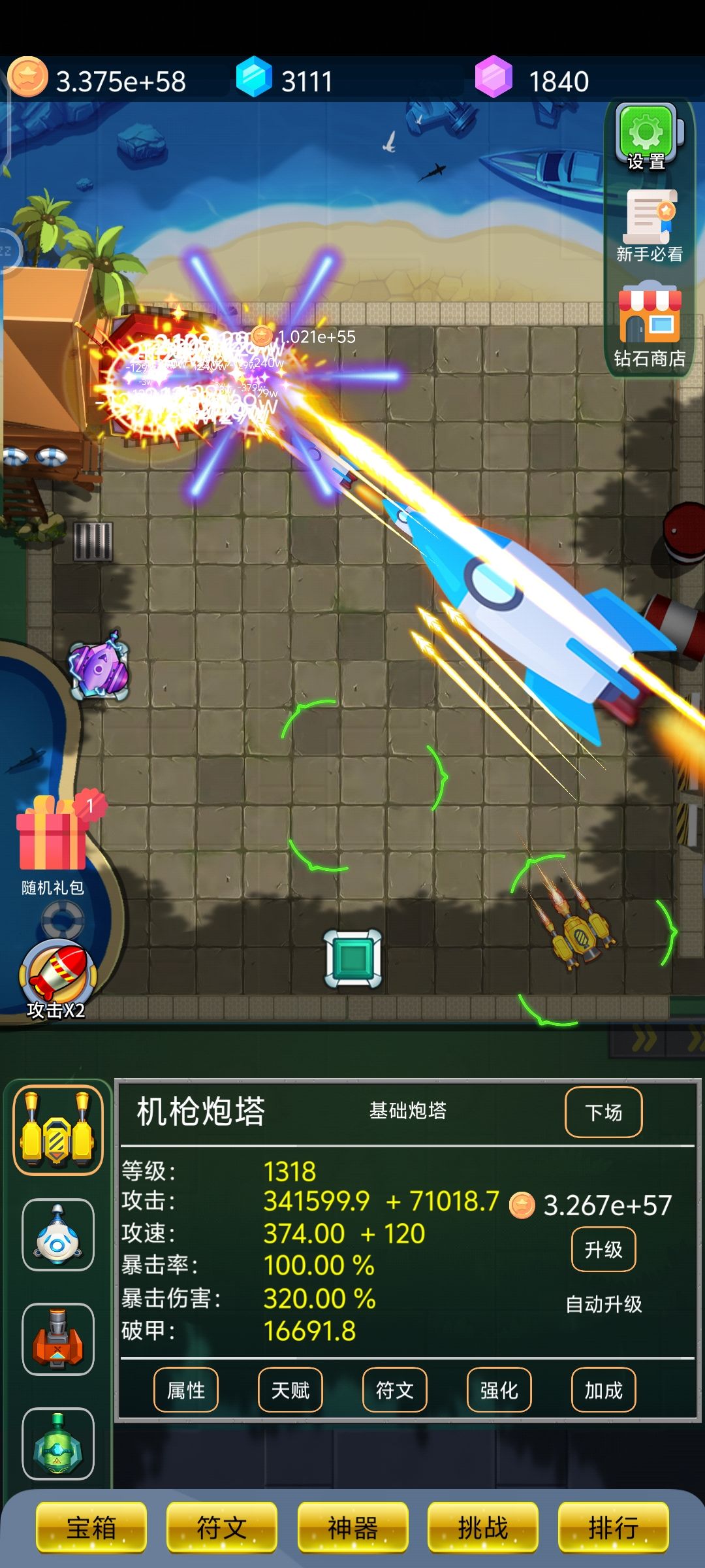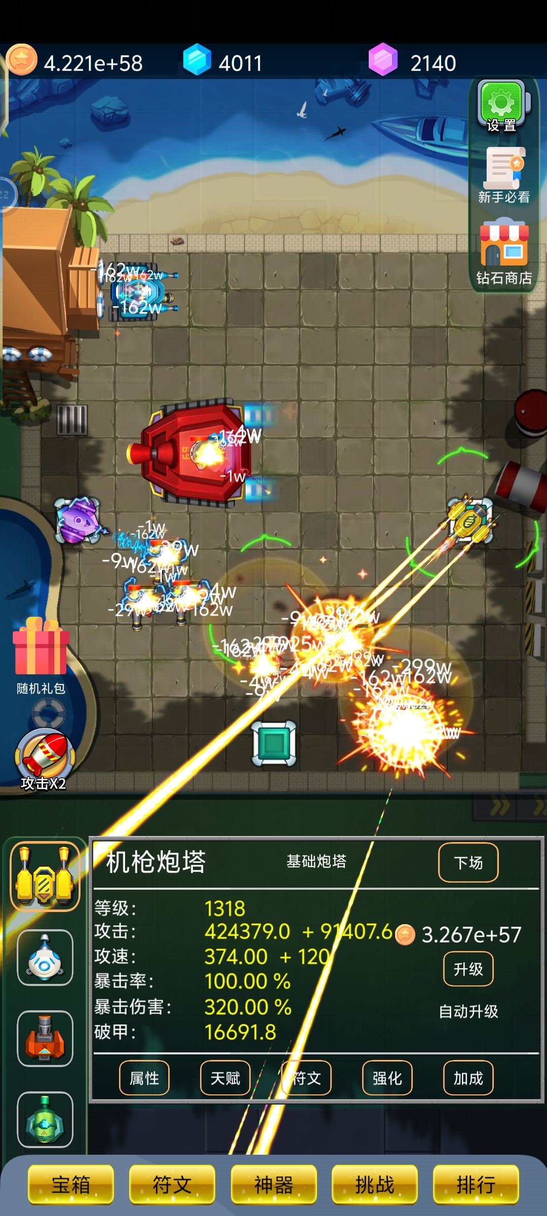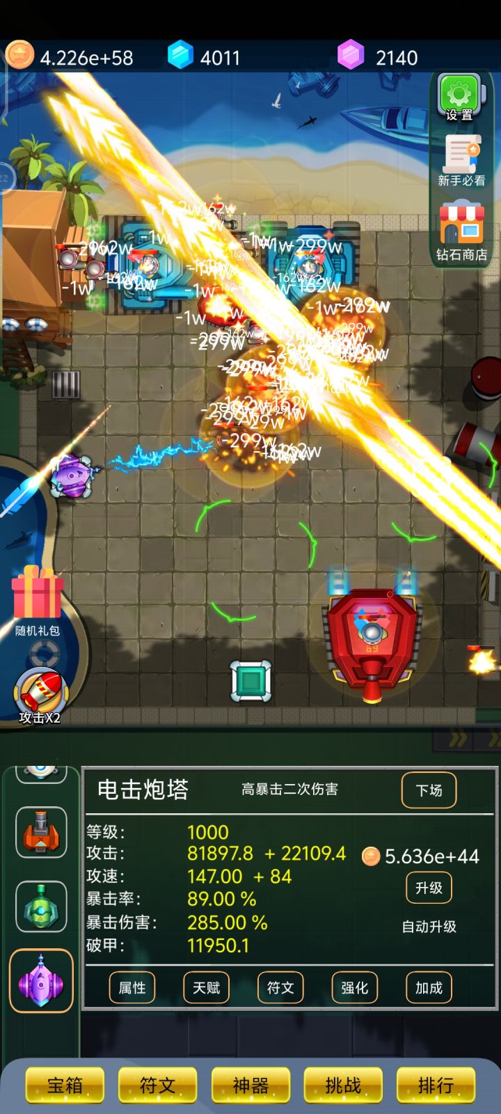 终于终于40级了,看下电塔升1000级对机枪的提升