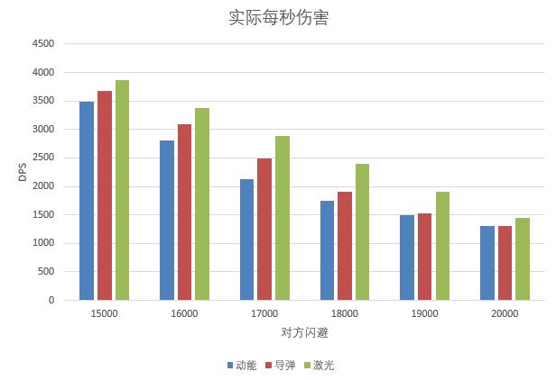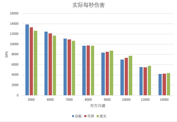 可以看到在敌方闪避固定的情况下,激光武器的DPS最高,命中也最高。
