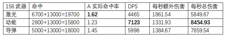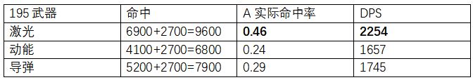 可以看到,高命中的舰船搭配动能武器的DPS非常突出。如果装配激光或导弹,则收益太低!