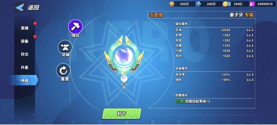 PS:突破受到英雄星级的限制,只有英雄达到特定的星级,才能突破圣物,进一步提升其属性。