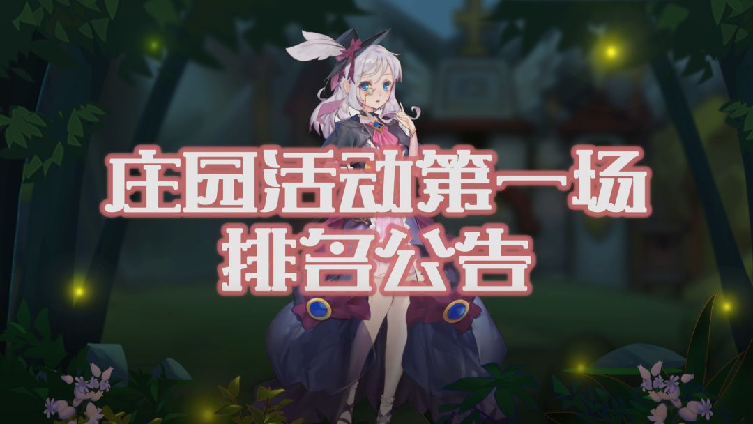 亲爱的镇长们,庄园试玩版限时活动第一场已经圆满结束啦,感谢各位镇长参与,现公布第一场活动的排名,若有疑问请私聊老镇长哦~注:本场活动奖励与庄园正式上线时奖励无关,正式版奖励请以实际为准奖励发放形式...