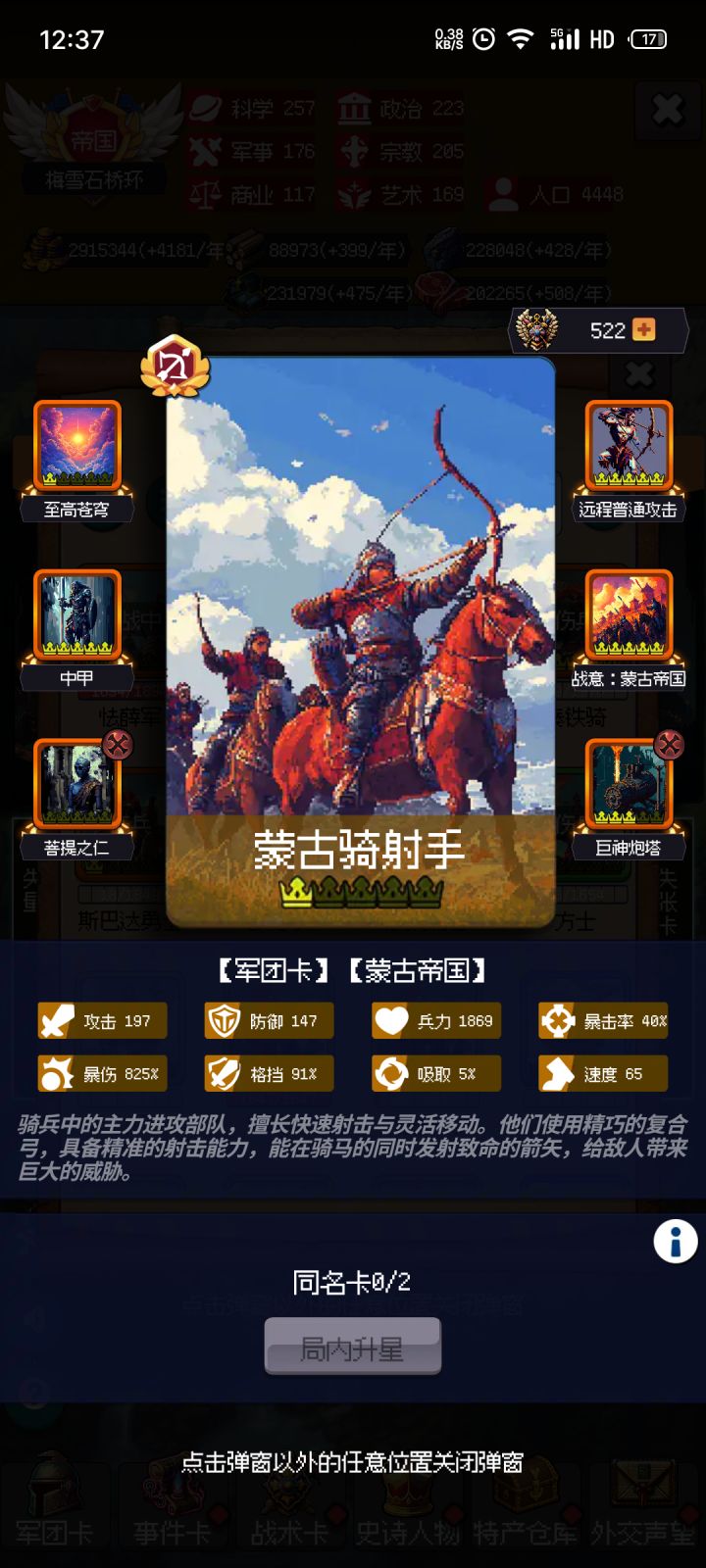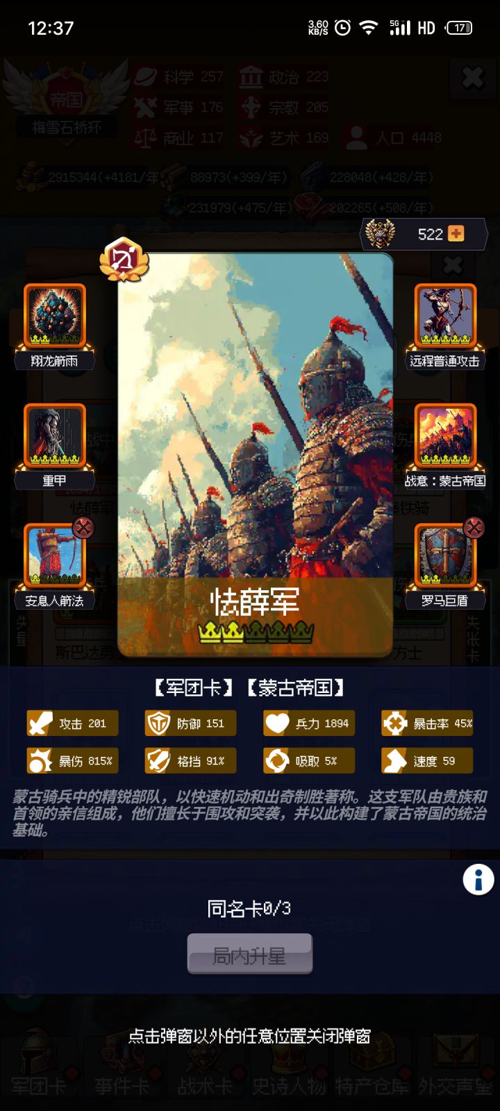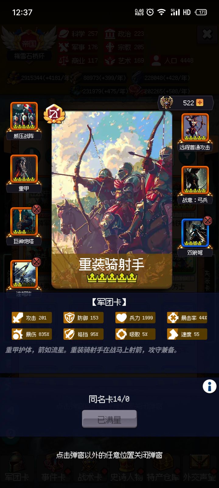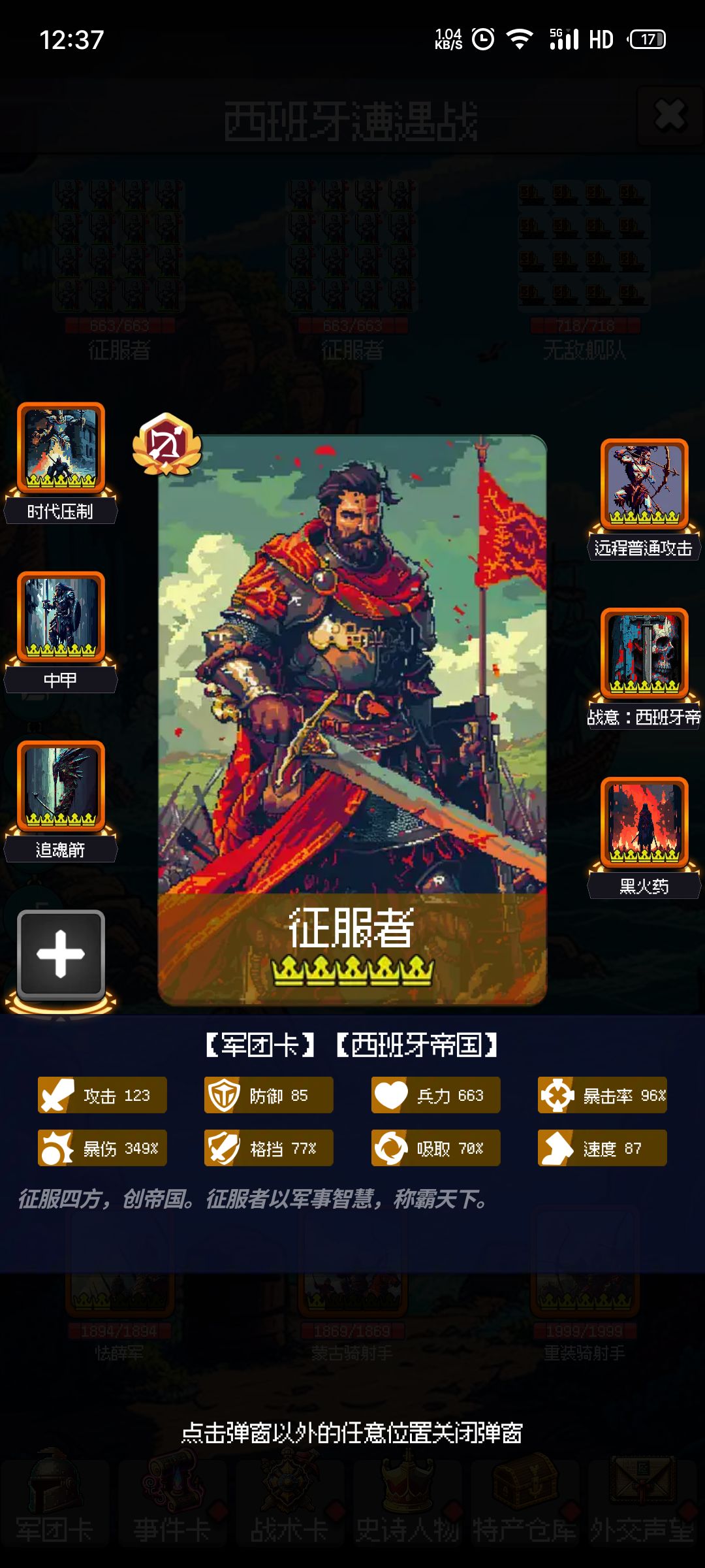 ,后面我换罗马巨盾也是为了防器械的破增益。最后的最后,边境固守一定要拿,叠格挡也可以(这个来的慢),攻击和爆伤起码要一个,不然你伤害低,没破格挡,对面吸血又高,很容易打奔溃的,我玩步兵就是打到99回合![[表情_捂脸哭]](https://img-tc.tapimg.com/market/images/83aa452eea88b5c64df710bca367b7e9.png)