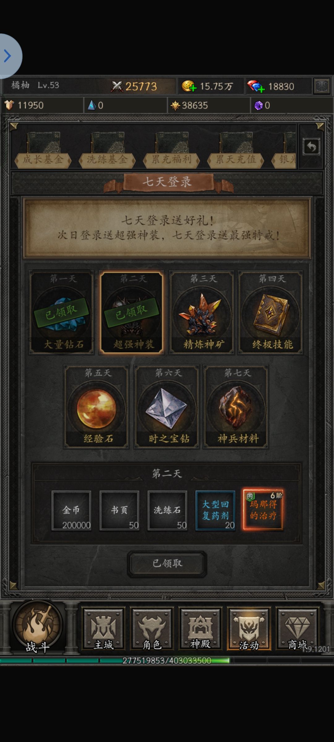 下面是我玩一天半的截图