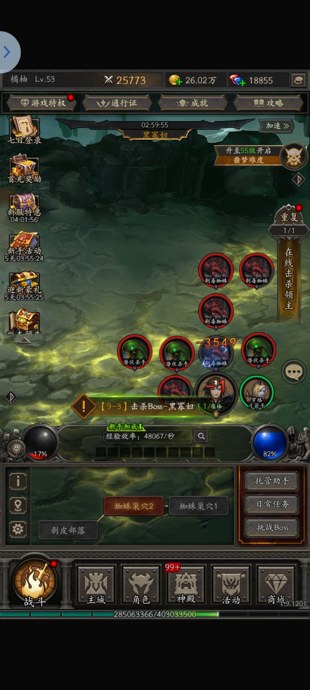 还有千万不要信那些说三天只能打到都瑞尔的。我零氪这样玩一天半就可以打了黑寡妇!