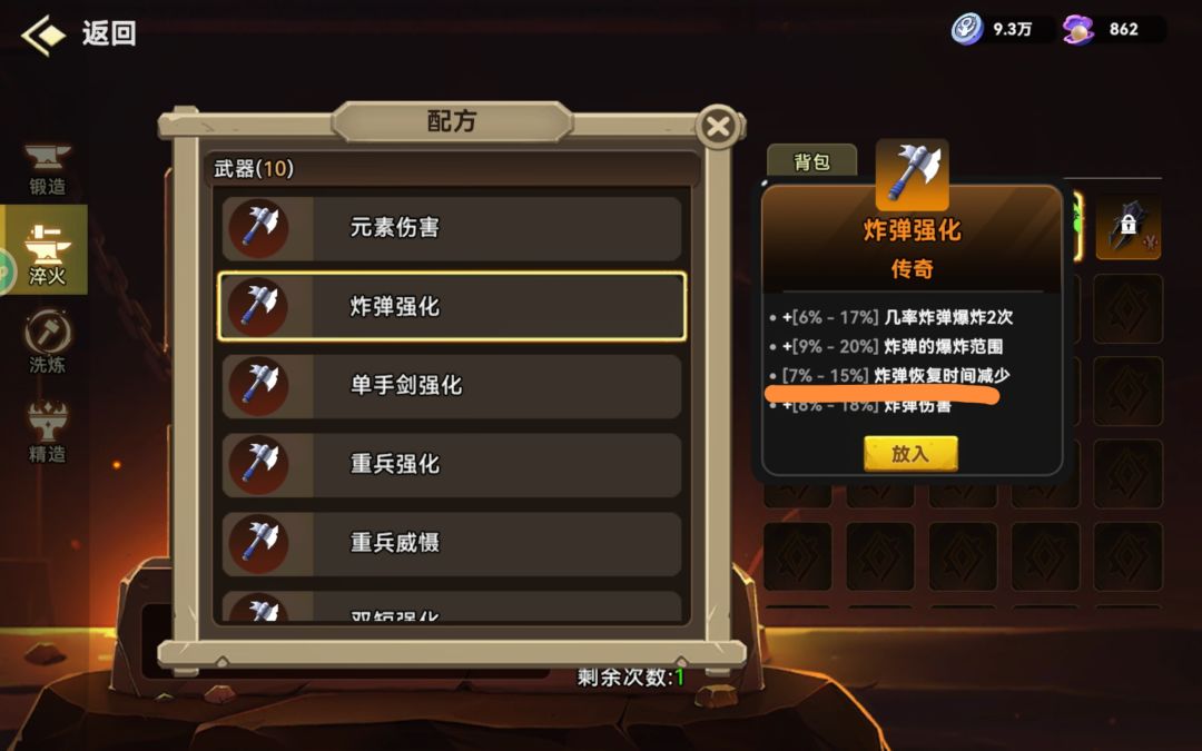 用这套BD,任何武器都可以尝试刷宏伟,武器和炸弹淬火两个炸弹冷却,刷一个炸弹CD鞋子,没有刷到就去刻印一个英姿勃发,基本上炸弹CD能循环,无限丢炸弹生成跟踪锯齿轮,走位躲弹幕伤害就可以了!更厉害的是拿武器双短,运气好大巨匠能刷到投弹后无敌两秒,基本上站桩打boss了!