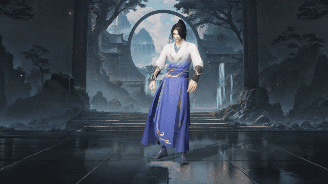以淡雅的蓝白渐变为主色调,仿佛将天空的辽阔与自由融入其中。长袍轻盈若羽,随风轻扬,每一步都踏出了武者的飘逸与不羁。