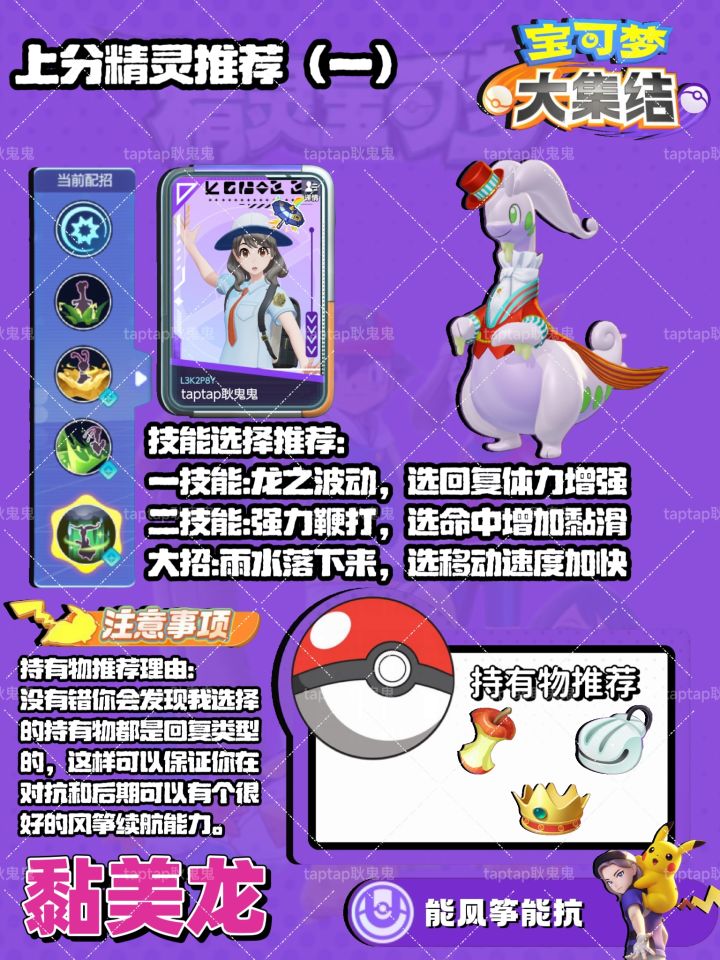 大家好,我是耿鬼鬼,今天给大家带来宝可梦大集结热门上分精灵推荐(注:国服版),因为国际服和国服有延迟性有一些精灵还没有上线,所以给大家推荐这几个精灵,可以保证稳稳上分,不管是逆风还是顺风,可以让你的对局很舒服。(前提是没有“人机”队友)毕竟一个人在怎么超神也没办法带领队友不是嘛👾,因为MOBO游戏的本质都是团队合作。这也是我们之间的羁绊啊。(全是个人分析见解,如果有什么不同意见也可以评论留言讨论哦)个人而言,一个人只需要主玩三个精灵即可