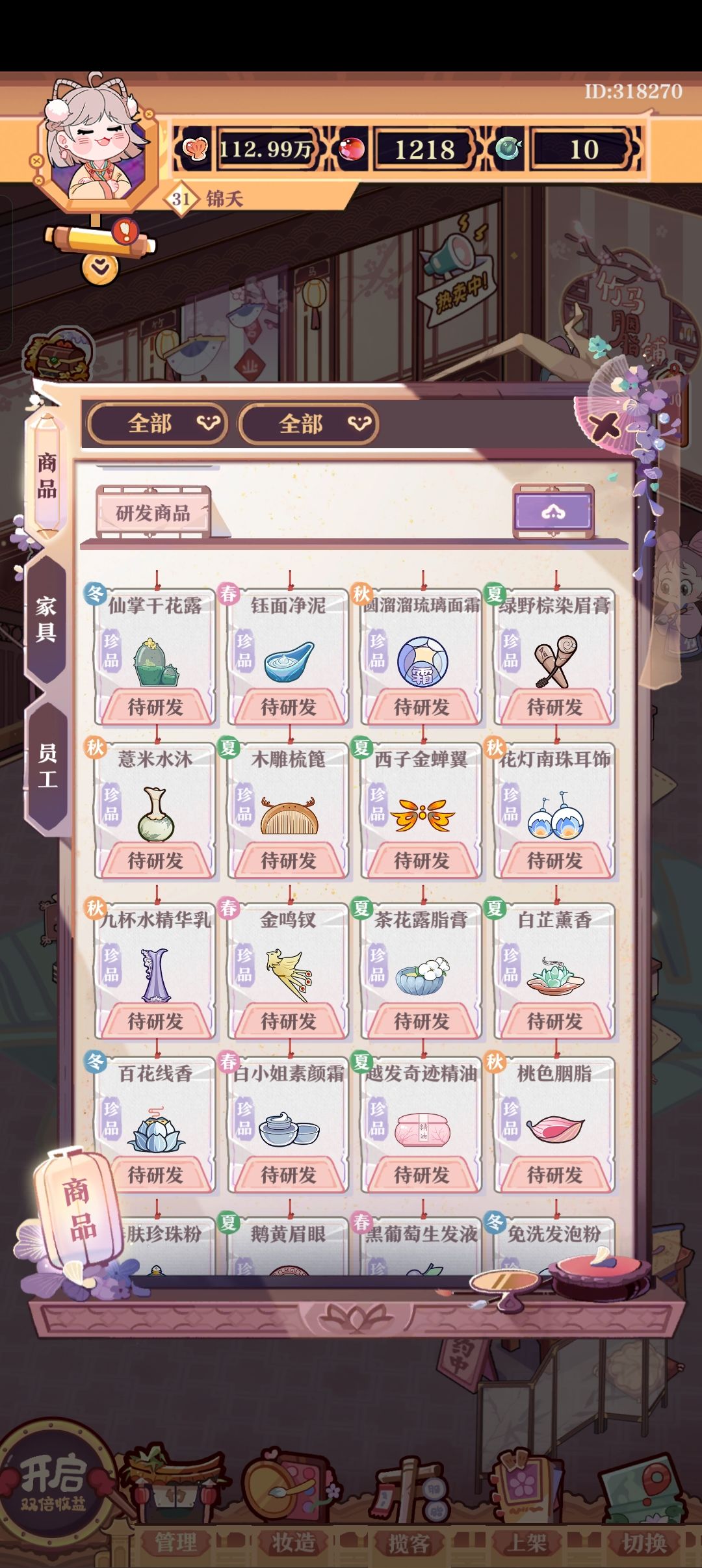 好崩溃啊好崩溃啊哈哈哈哈哈哈哈,玩了这么久,都肝到三十一级了,今天是怎么一夜回到解放前了是吗?会员要重新解锁,商品要重新购买研发,小目标要从头开始再完成一遍。连我的好友都要重新加,服啦哈哈哈哈哈