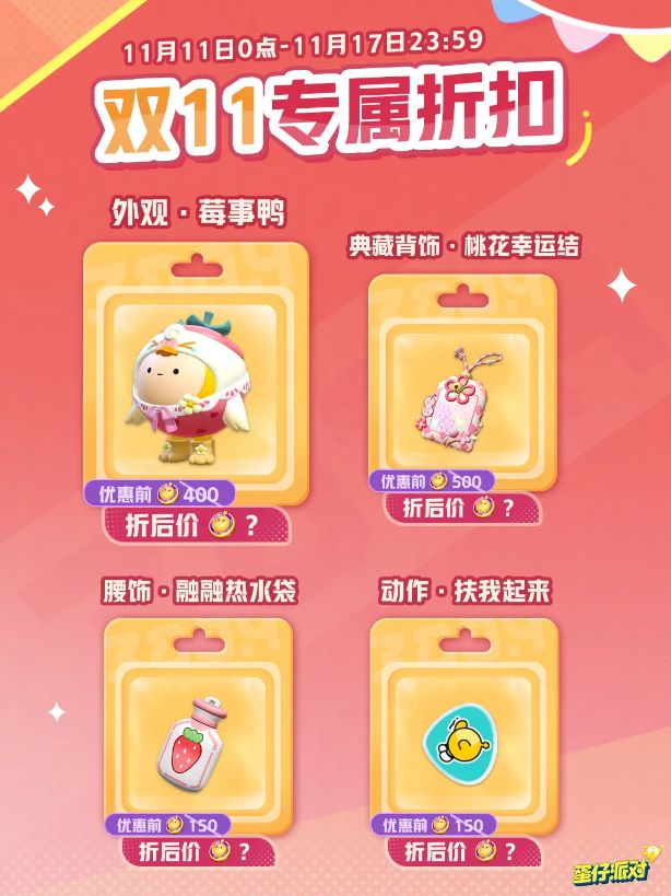 又是一年双11,享折扣,穿新衣!国民原创乐园游戏《蛋仔派对》于11月1日起,上线多重双11充值返利、消费折扣活动,并于11月8日上线全新外观“道士鬼月”。小蛋仔们速速登岛享惊喜吧!